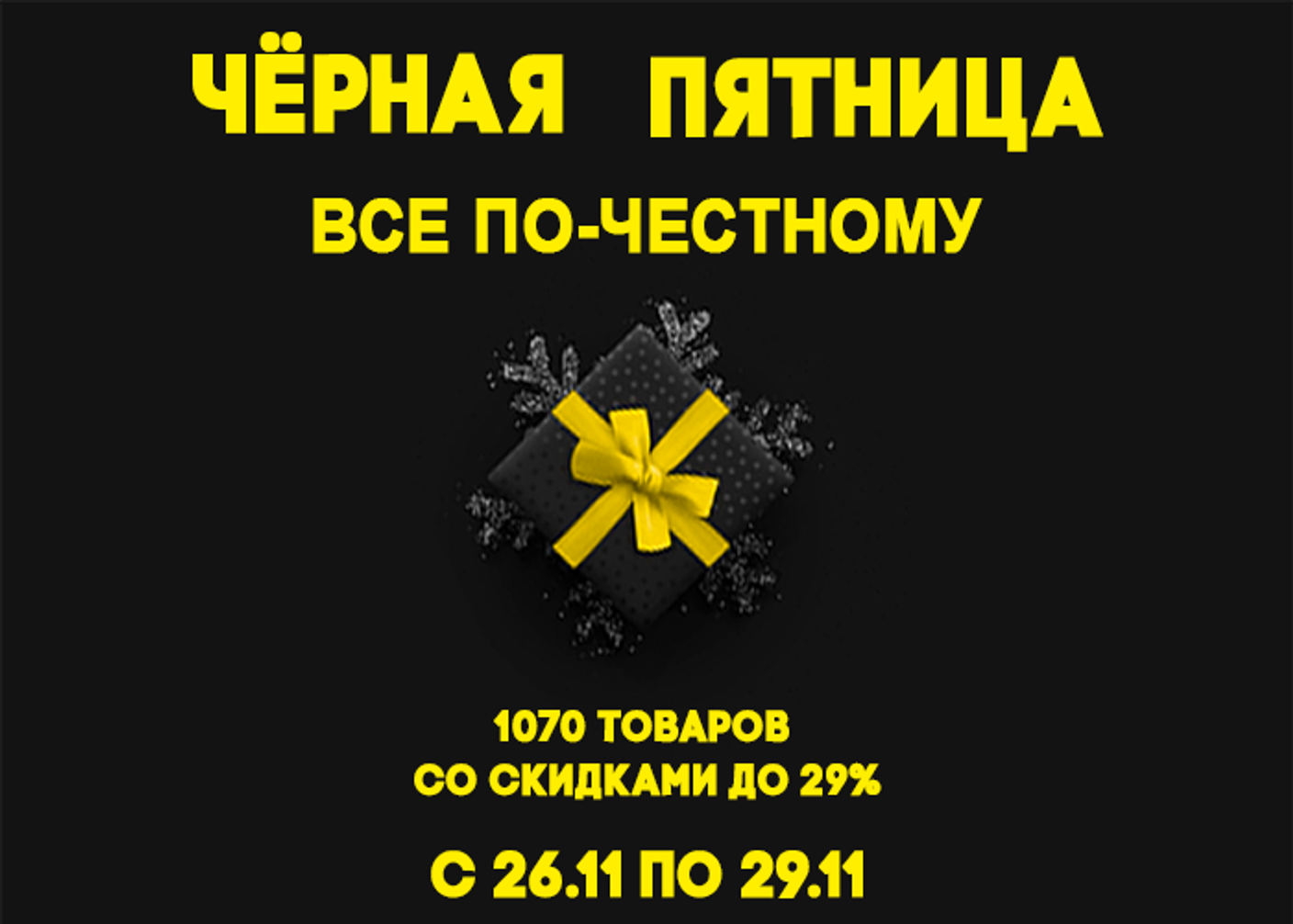 Акция «Чёрная Пятница» стартует 26 ноября в 18:00 и продлится до 23:59 воскресенья - 29 ноября.