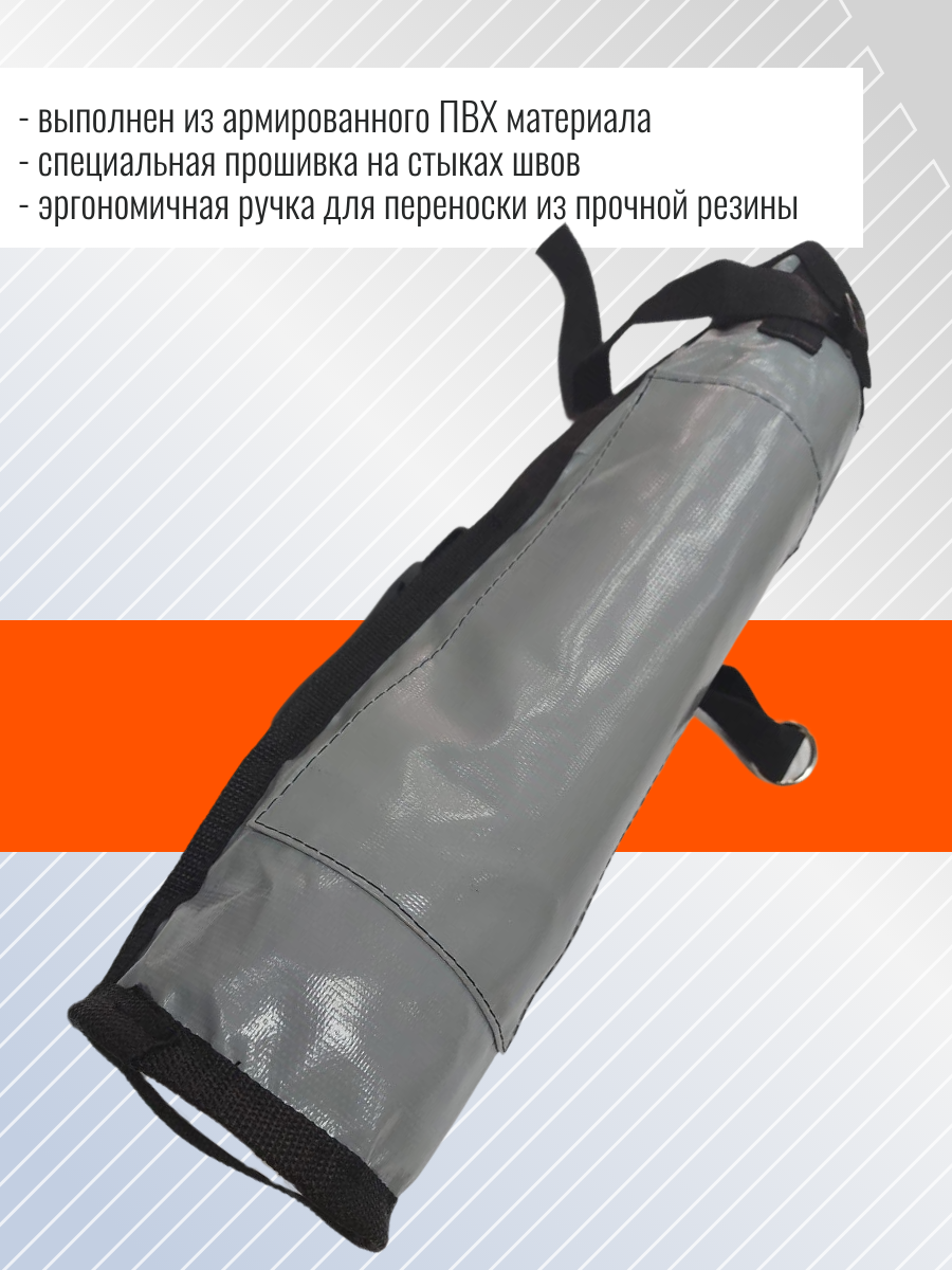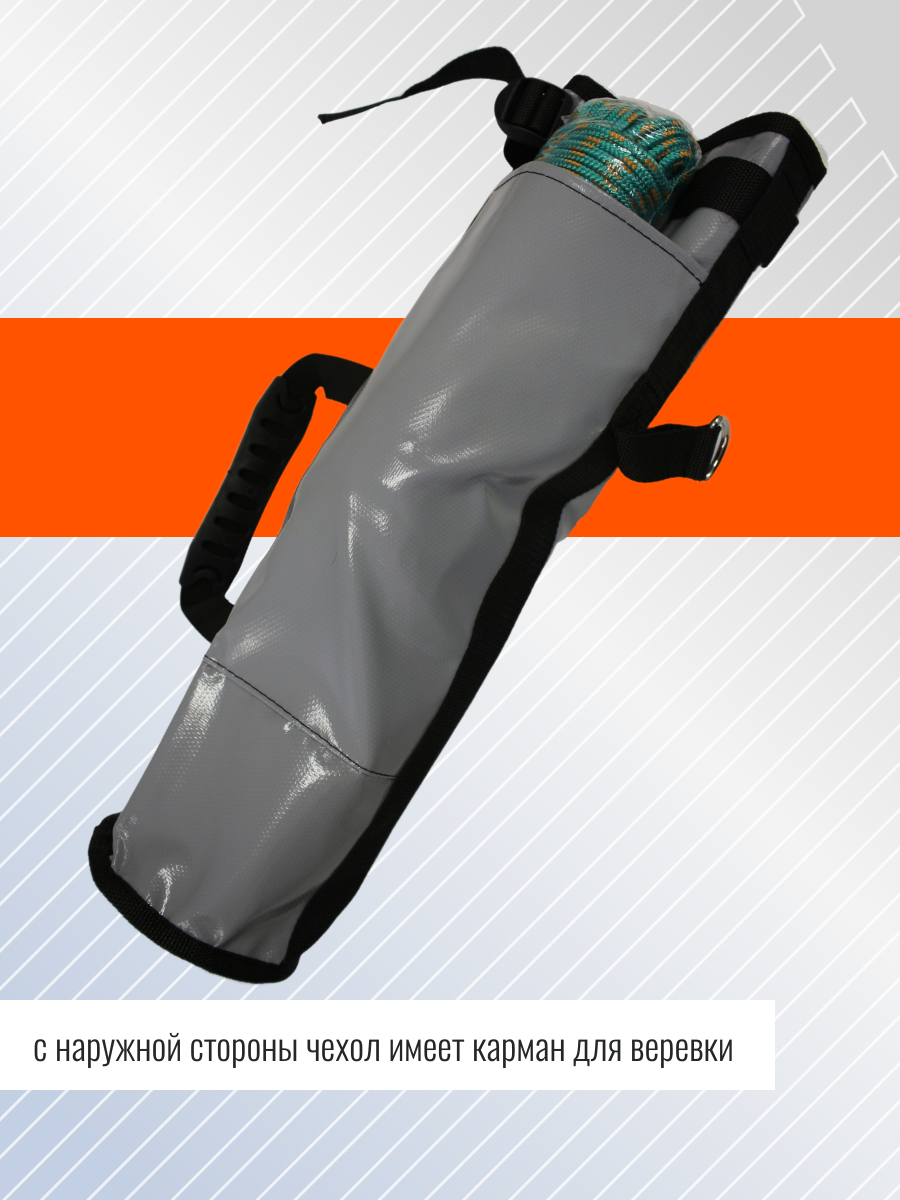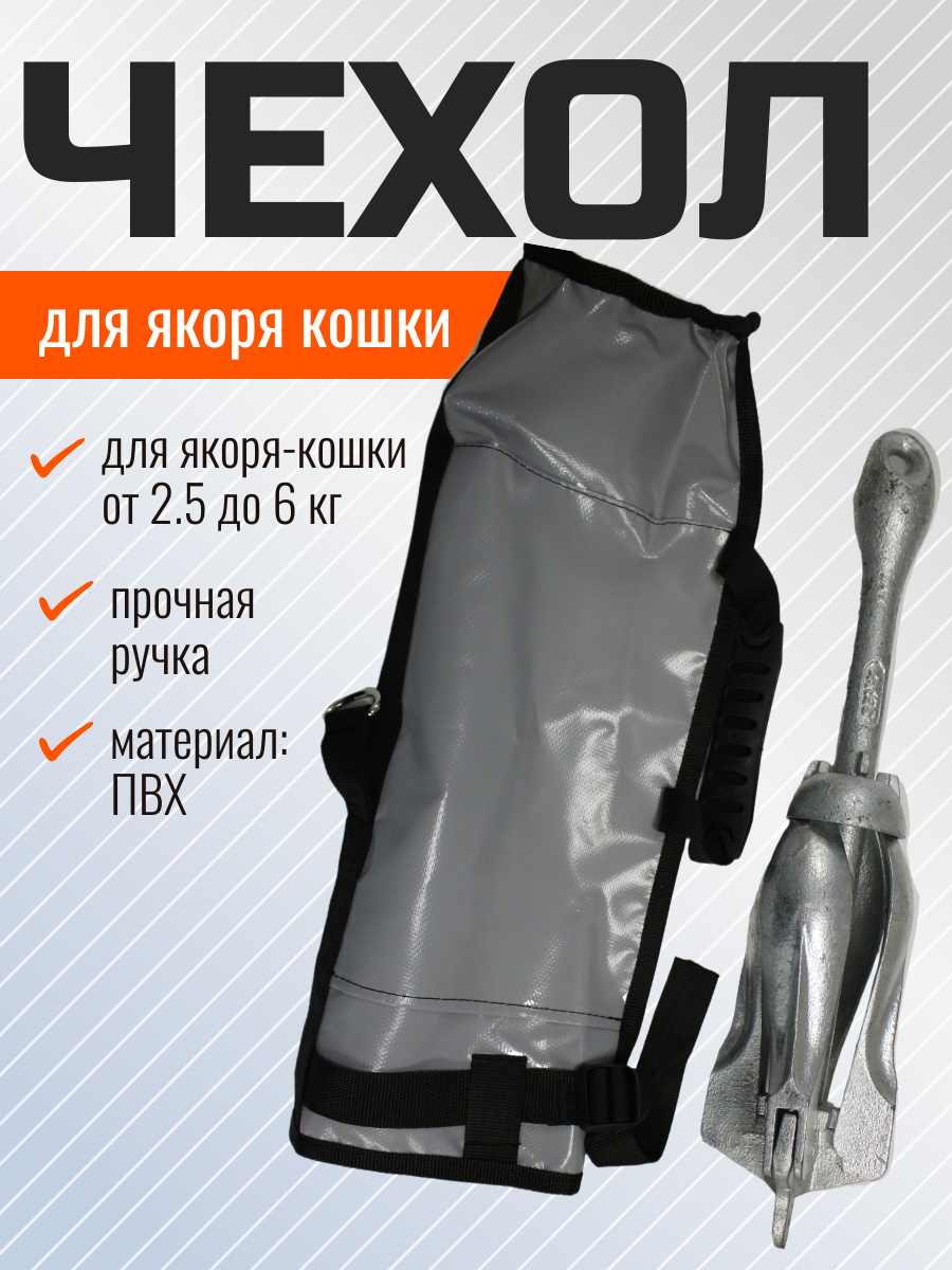 Чехол для переноски (хранения) якоря-кошки весом от 2.5 до 6 кг. Выполнен из армированного ПВХ материала. Специальная прошивка на стыках швов, кольцо для пристегивания чехла внутри или снаружи лодки. Эргономичная ручка для переноски из прочной резины. Карман с внешней стороны для якорной веревки.Артикул: С-0001; В000349630