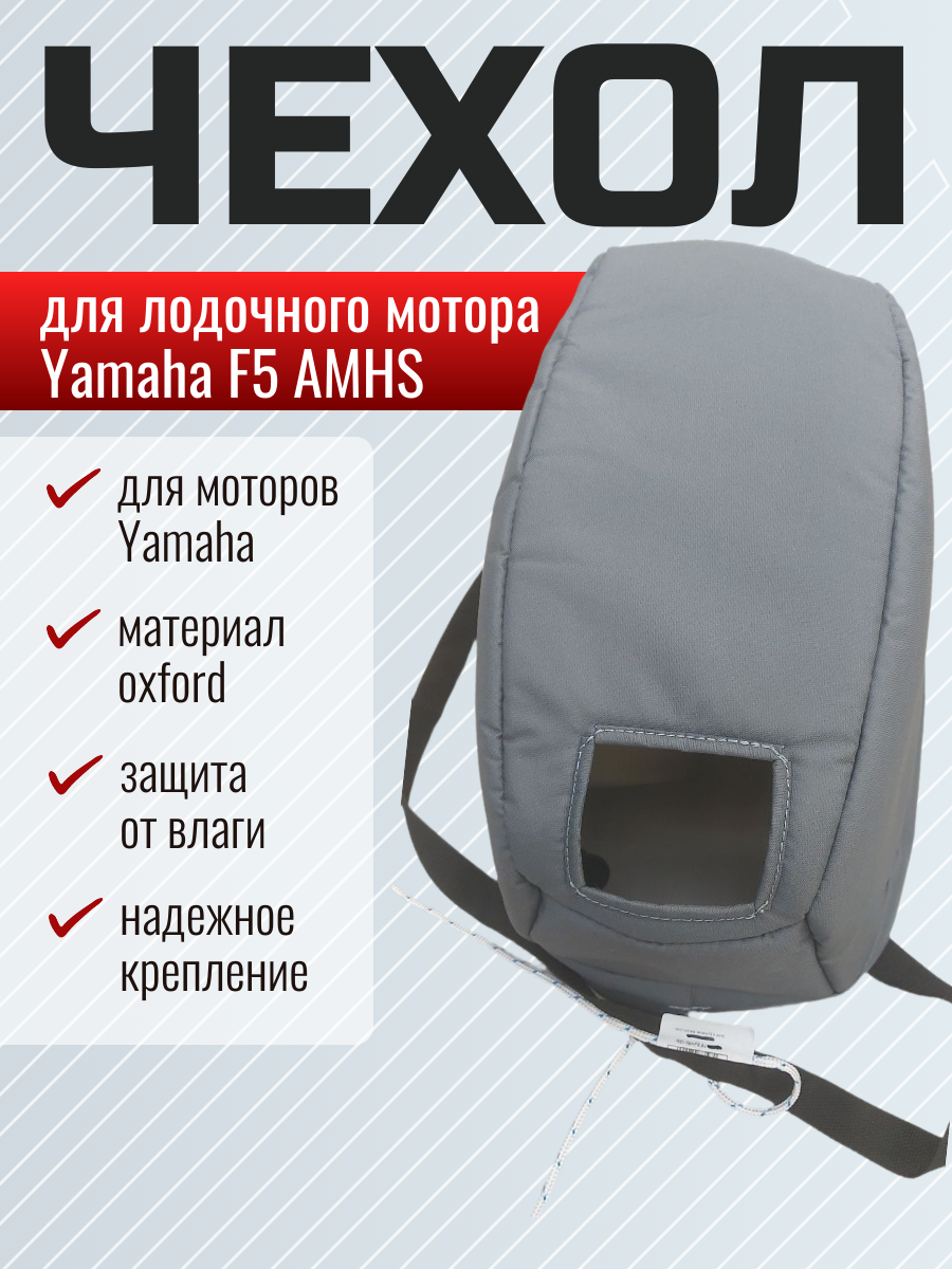 Защитный чехол на капот подвесного лодочного мотора. Скроен четко по обводам определенной модели мотора. Материал внешний - прочный oxford высокой плотности. мягкая подкладка внутри чехла обеспечивает не только защиту от механических повреждений, но и снижает шум. Имеет специальные вырезы для рукоятки стартера (для ручного запуска) и отверстие с сеточкой в месте воздухозаборника.