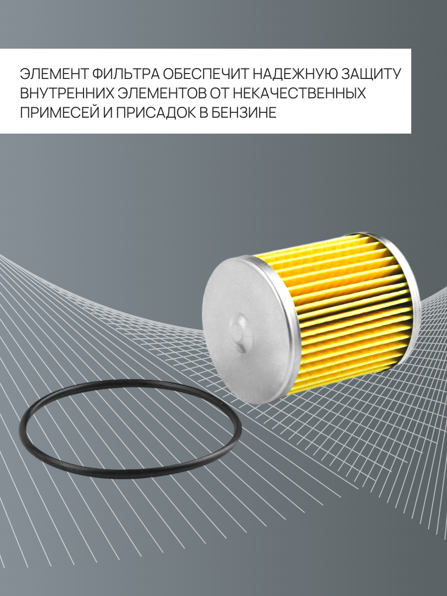 Используется для удаления и фильтрации загрязнений из топлива. Элемент фильтра обеспечит надежную защиту внутренних элементов от некачественных примесей и присадок в бензине. Благодаря материалам используемым при изготовлении, изделие прослужит Вам долгий срок.