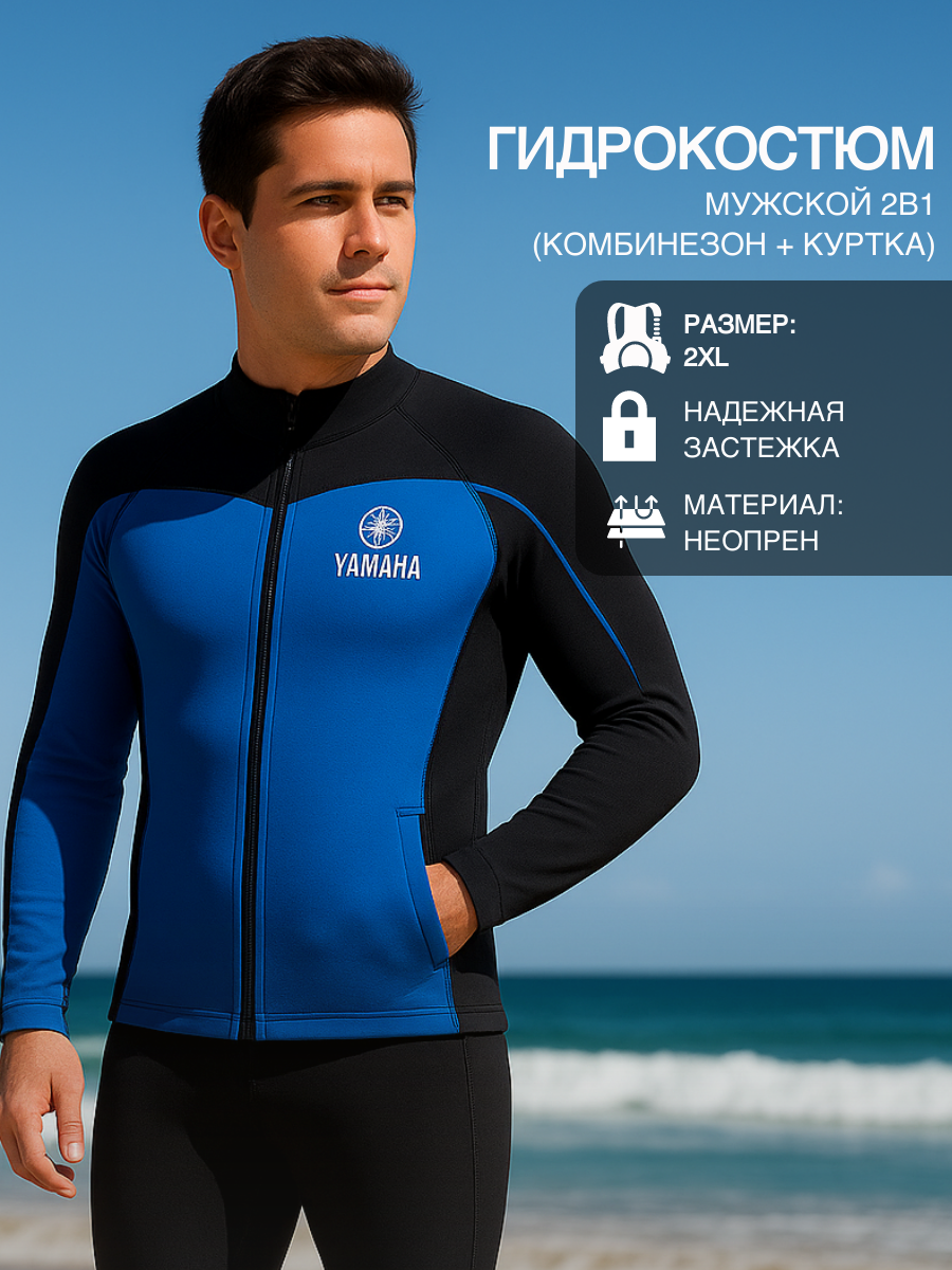 Комплект состоит из неопренового комбинезона без рукавов и неопреновой куртки на молнии. 2мм неопрен: вода температурой в среднем 18-23C. Конструкция с застежкой-молнией сзади для комбинезона и застежкой-молнией спереди для куртки. Технология минимального шва. Защита голени с нескользящим покрытие и толщиной материала 5 мм.