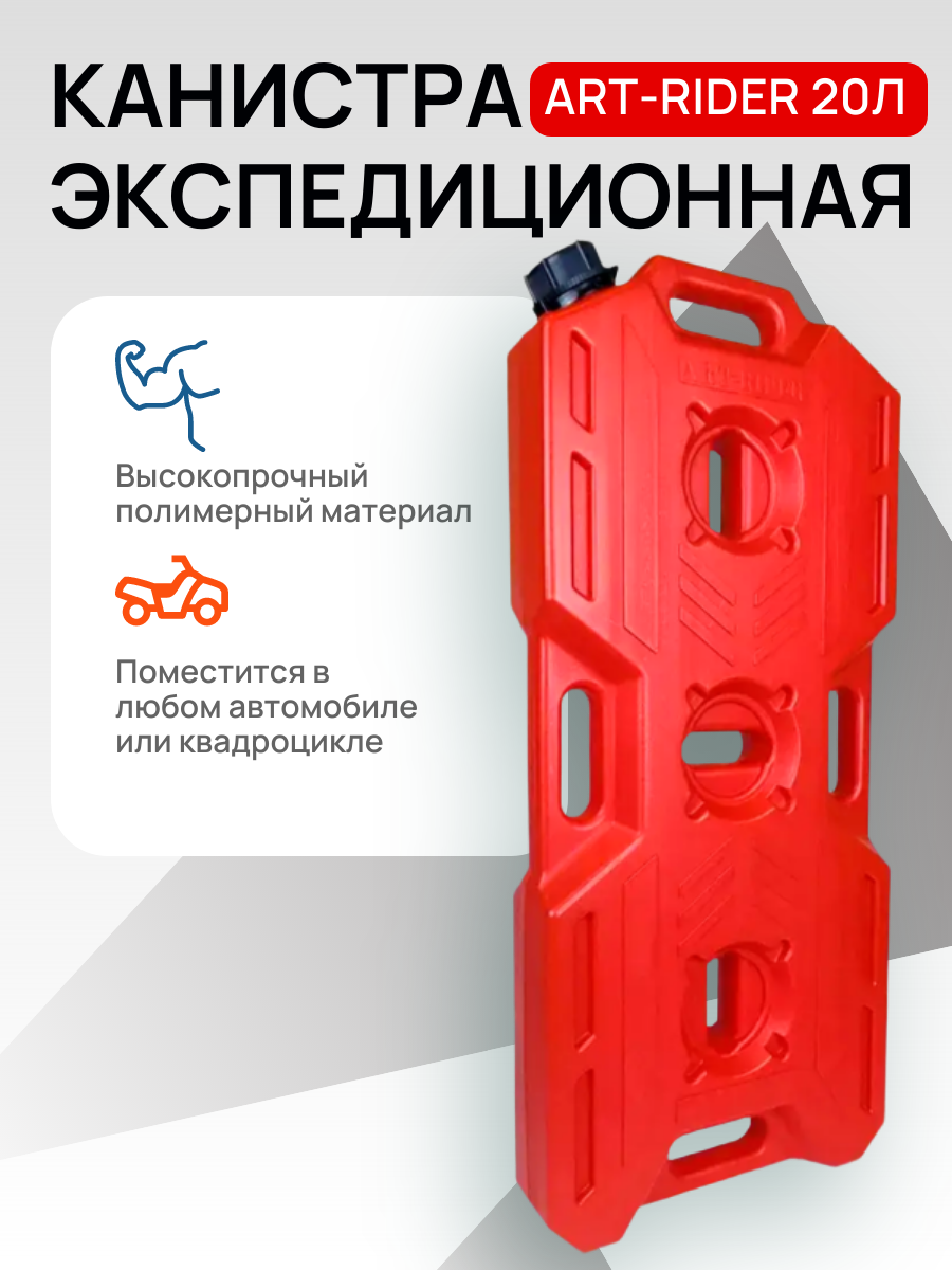Экспедиционные канистры ART-RIDER разработаны по современным технологиям и изготовлены из высокопрочного полимерного материала. Оригинальная конструкция канистры позволяет выдерживать экстремальные нагрузки при транспортировке, в частности, канистра не раскалывается от ударов, выдерживая точечную нагрузку 1000 кг, не протирается от вибрации, выдерживает критическую плюсовую и минусовую температуру Канистры предназначены для перевозки как технических, так и пищевых жидкостей в самых экстремальных условиях. В таких канистрах обычно транспортируют: ГСМ Вода Спирт Канистра на 20 литров отлично подходит для транспортировки благодаря своей удобной плоской форме. Поместится в любом автомобиле или квадроцикле. Со всех сторон у канистры есть специальные ручки, что позволяет брать её из любого положения и не марать при этом руки. Имеются 3 отверстия для крепежа. Габаритные размеры: - ширина: 850 мм - глубина: 360 мм - высота: 100 мм Фактический объем: 20 л Вес: 4 кгАртикул: ТА.161.132.100-К; В000303917