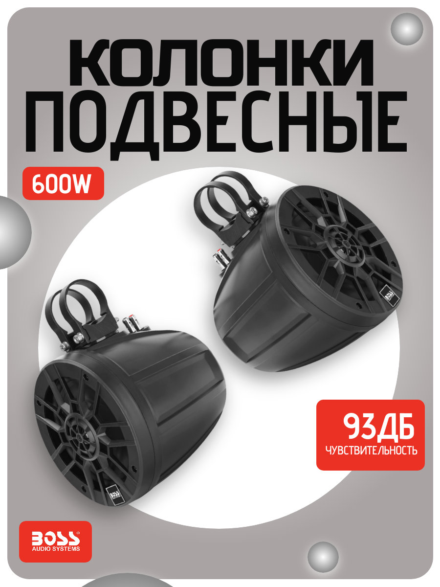 Комплект подвесных корпусных колонок BossAudio 6.5" 600W (2 шт.), черный Защищенная от атмосферных воздействий закрытая система 6,5" 2-полосная пара динамиков Максимальная мощность 600 Вт, RMS - 300 Вт на пару Частотная характеристика от 140 Гц до 20 кГц и чувствительность 93 дБ 1 твитер на динамик В комплекте 2 динамикаАртикул: MPWT60; В000347134