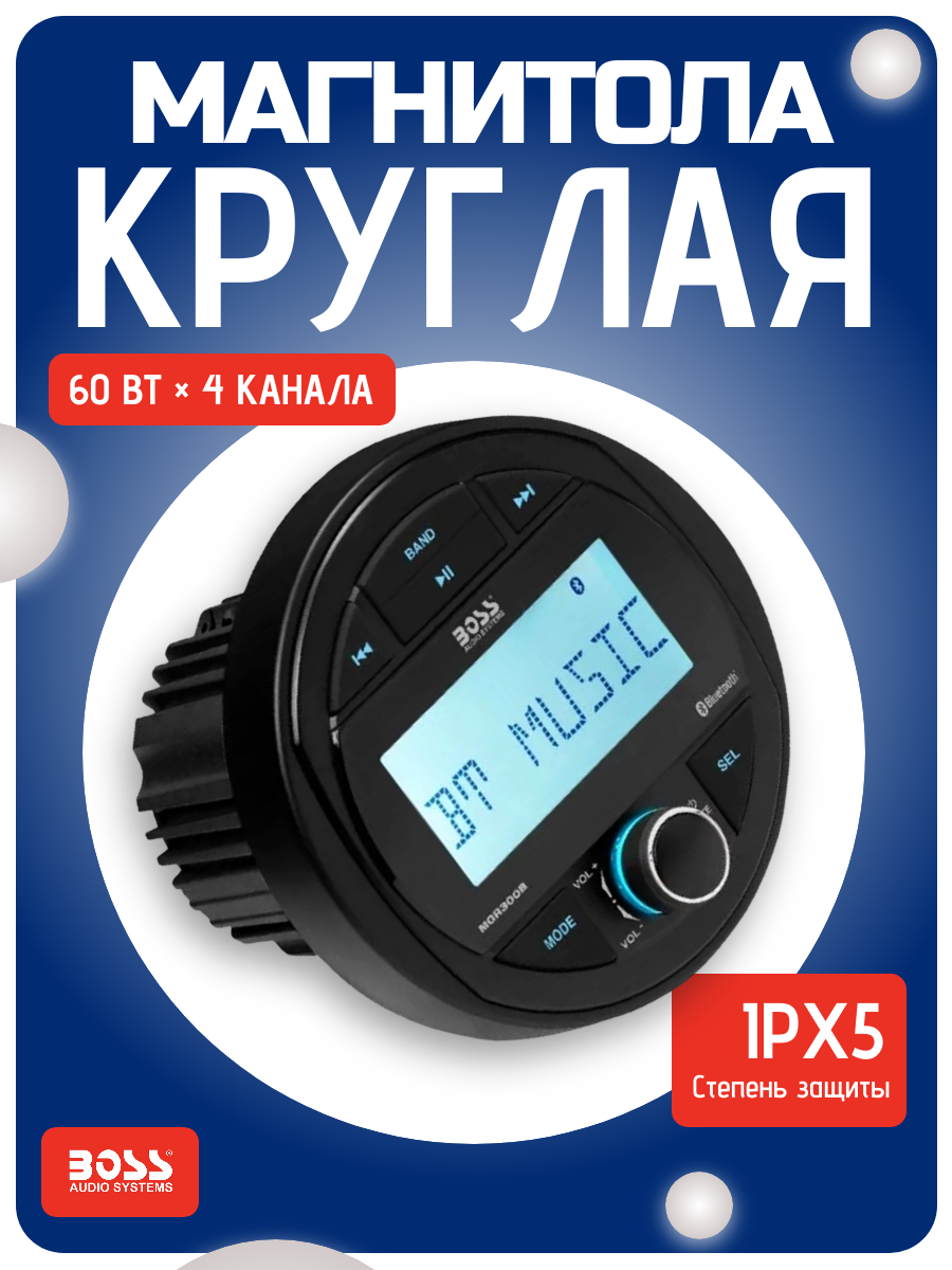 Морское головное устройство — без проигрывателя компакт-дисков, аудио Bluetooth, класс IPX5, USB, MP3, радиоприемник AM/FM, в комплект входит всепогодный чехол