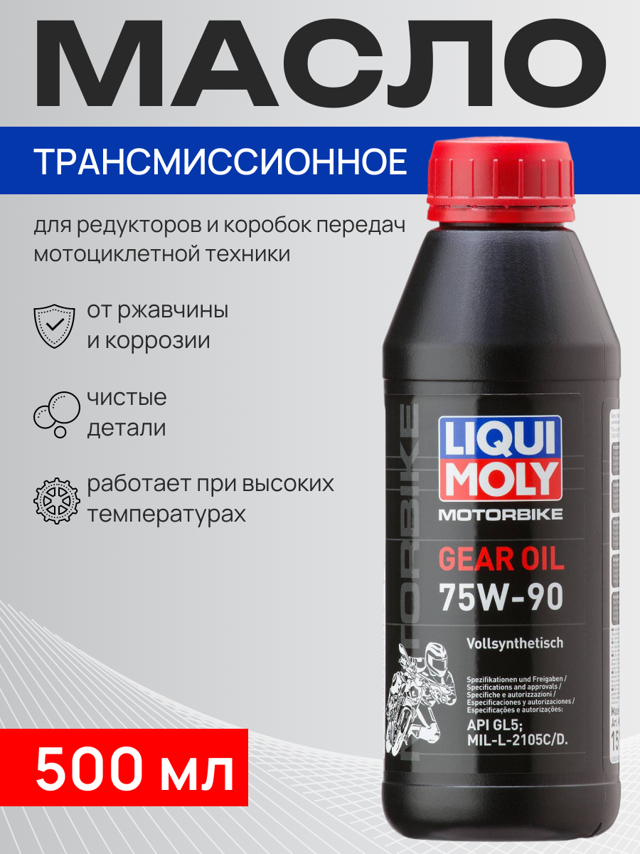 100% синтетическое трансмиссионное масло на базе полиальфаолефинов (ПАО) для редукторов и коробок передач мотоциклетной техники. Всесезонное. Для тяжелых условий эксплуатации, в том числе при отрицательных температурах. Воспринимает ударные нагрузки, снижает трение, износ. Способствует экономии топлива. Для повышенных интервалов замены. Допуск: -API Трансмиссионное: GL-5 -MIL-L: 2105 C/2105 D Использование современного полностью синтетического базового масел (ПАО) и передовых присадок высокого давления гарантирует широкий температурный диапазон использования, надежность масляной пленки, длительный срок эксплуатации масла. Обеспечивает надежную защиту агрегатов трансмиссии в тяжелых условиях. Увеличивает ресурс агрегатов, поддерживает детали в чистоте. - Отличные пусковые свойства в мороз - Восприятие ударных нагрузок - Высокая смазывающая способность - Замечательная термоокислительная стабильность и устойчивость к старению - Оптимальная чистота агрегатов - Стабильность при высоких температурах - Длительный срок службы Благодаря тому, что Motorbike Gear Oil 75W-90 - 100% ПАО-синтетика, использование масла дает уверенность в стабильности защитных свойств даже в условиях перепадов температур, высоких нагрузок и при превышенных сроках замены. Способствует экономии топлива. Значительно увеличивает ресурс агрегатов.Артикул: 1516/7589; В0000104918