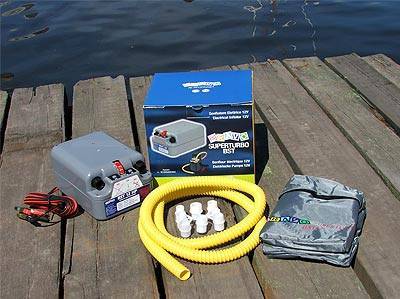 Электрический насос, оснащенный аккумулятором емкостью 7 А/ч и способный работать автономно примерно в течение 15-20 минут. Подзарядка осуществляется от штатного гнезда прикуривателя автомобиля или катера.