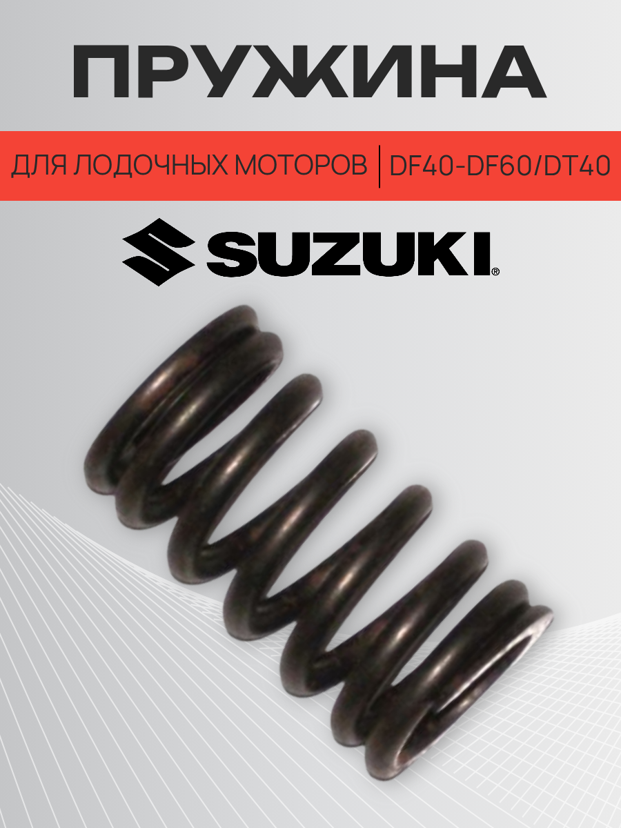 Пружина для лодочных моторов Suzuki Устанавливается на следующие модели: Suzuki DF40 Suzuki DF50 Suzuki DF60 Suzuki DT40Артикул: 09440-07078-000; В0000168809