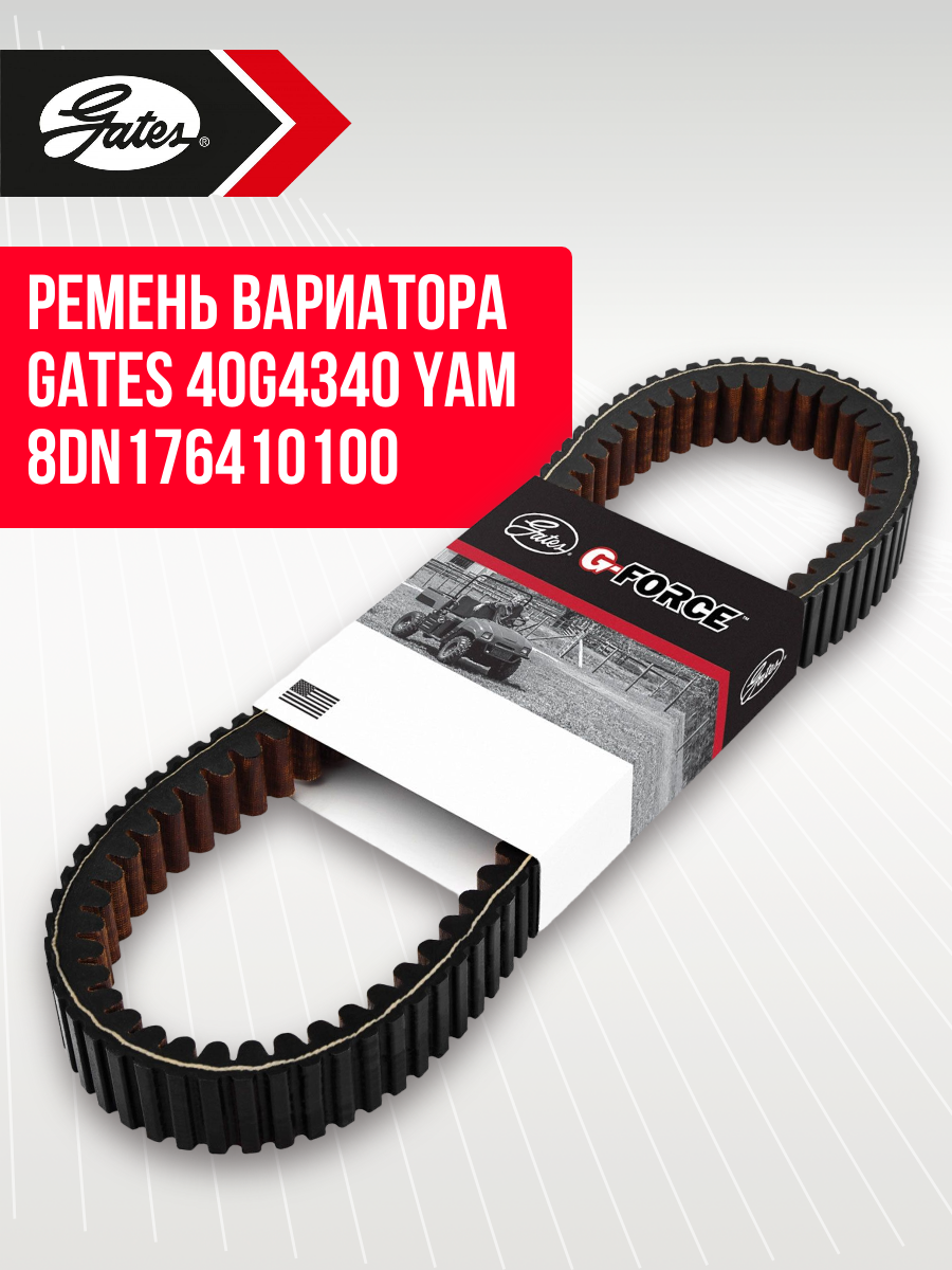 Ремень вариатора Gates 40G4340 Тайга 500/550 и Буран 4Т Yamaha Viking и Professional с объемом двигателя 485 - 1049 куб.см. 1998 - 2013 годов выпуска