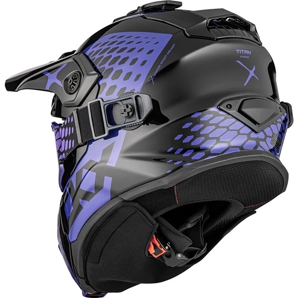 Хотите пообщаться с друзьями, с которыми катаетесь на мотоцикле, или остановиться, чтобы выпить чего-нибудь на трассе? Не нужно снимать шлем благодаря уникальной съёмной маске Titan. Воспользуйтесь преимуществами исключительного поля зрения благодаря очкам с углом обзора 210°. Форма очков идеально соответствует отверстию в шлеме, обеспечивая дополнительную защиту от снега и холода.