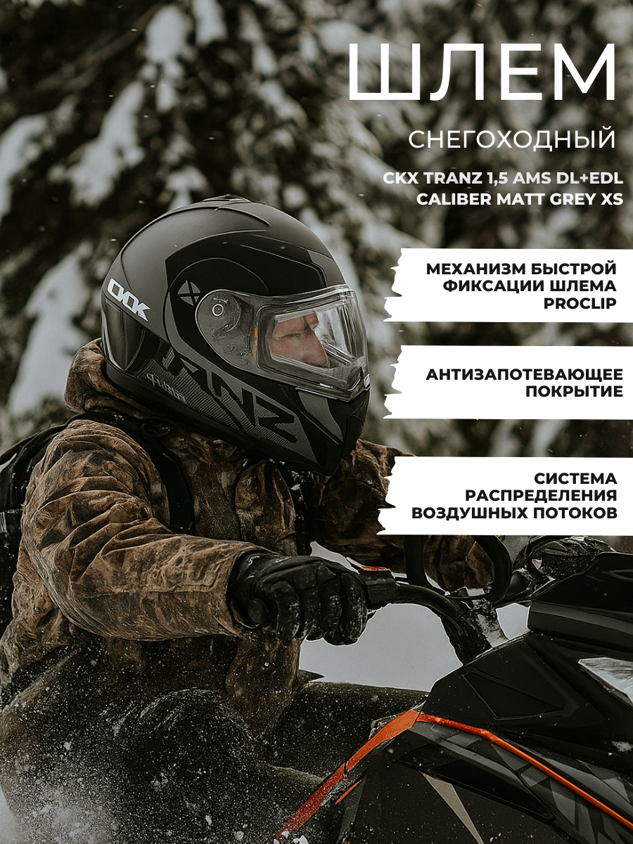 Шлем CKX TRANZ 1,5 Ams DL+EDL Caliber Matt grey