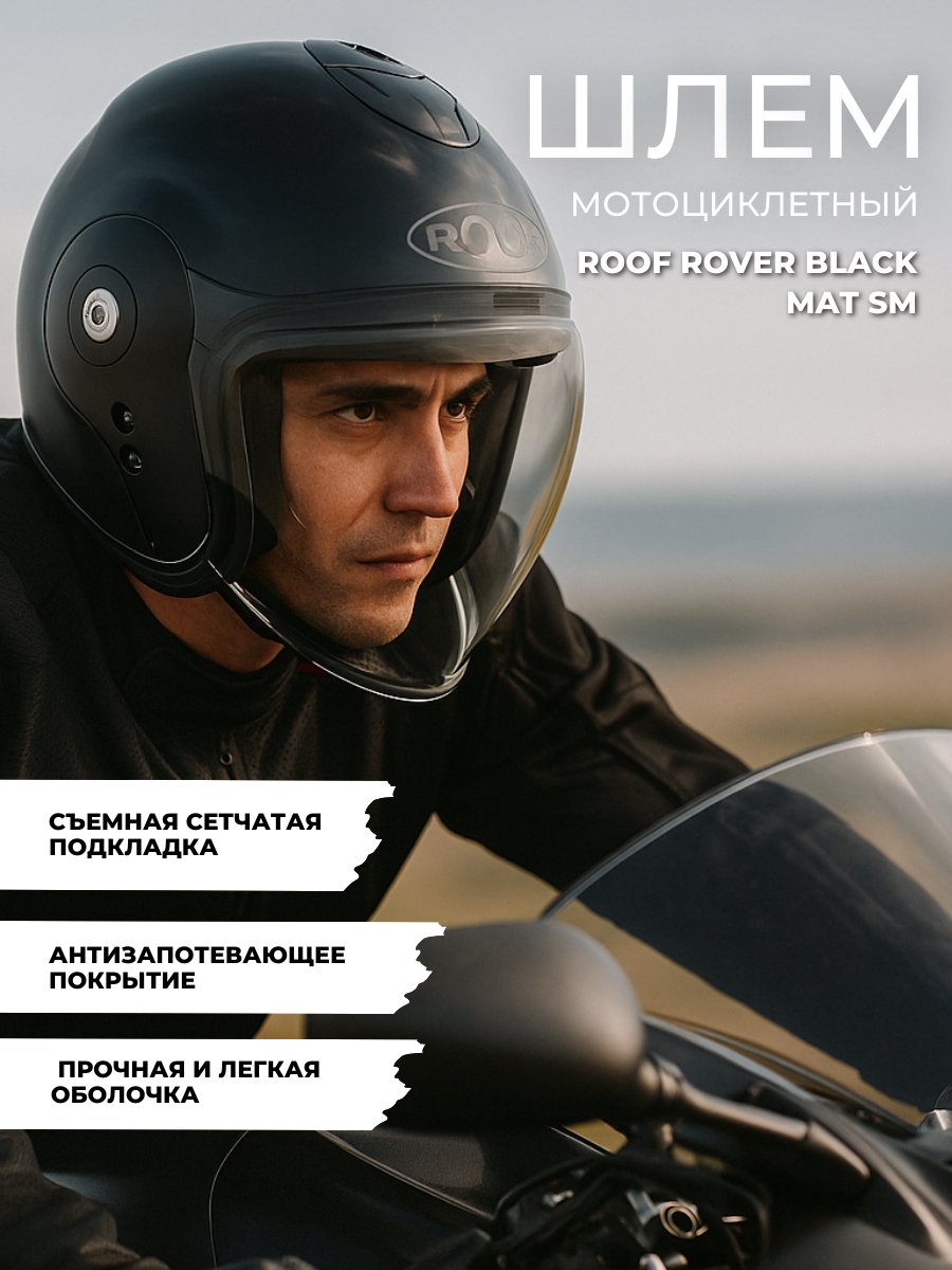 Мотошлем Roof Rover - классический открытый шлем с объемным визором.
