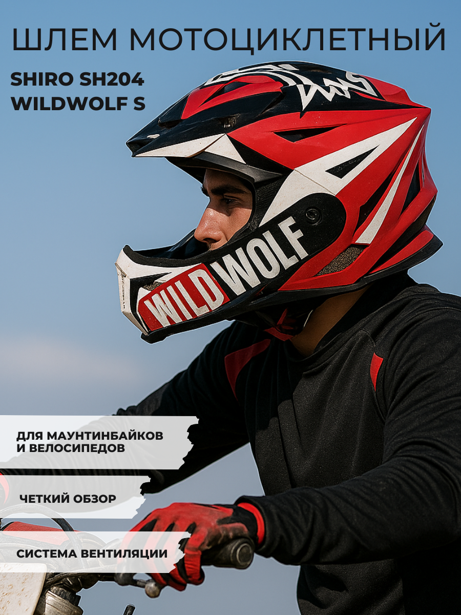 Ультралегкий кроссовый мотошлем Shiro MX-917 Wildwolf обладает яркой необычной графикой. Раскраска Wildwolf - фирменный знак компании Shiro. Шлем полностью изготовлен из карбона, от этого имеет необычайно малый вес 1150 грамм. Съемный козырек улучшает аэродинамические свойства, регулируется по высоте. Вентиляционные отверстия в зоне лба и подбородка обеспечивают достойную вентиляцию. В заднем спойлере располагаются отводящие экстракторы.