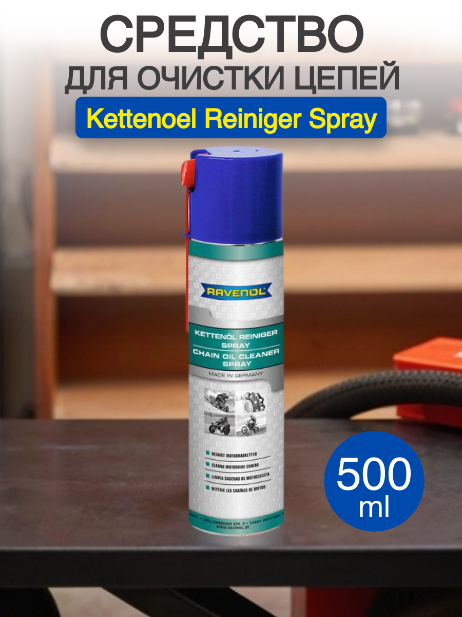 Очиститель-спрей высшего качества для очистки всех видов приводных цепей картингов, мотоциклов, квадроциклов, мопедов, скутеров и велосипедов. Эффективно удаляет пыль, песок, грязь, следы коррозии. RAVENOL Kettenol Reiniger Spray – высокоэффективный очиститель-спрей высшего качества, изготовленный в Германии. RAVENOL Kettenol Reiniger Spray предназначен для очистки всех видов приводных цепей картингов, мотоциклов, квадроциклов, мопедов, скутеров и велосипедов. Эффективно удаляет пыль, песок, грязь, следы коррозии и остатки смазочного масла, тем самым продлевая срок службы цепи. RAVENOL Kettenol Reiniger Spray не содержит в своём составе озоноразрушающих компонентов. В качестве газа пропеллента используется пропано-изобутановая смесь. Применение Kettenol Reiniger Spray обеспечивает: Идеальное очищение, полностью удаляет отложения Высокую скорость испарения, быстрое высыхание Очищение без остатка Превосходную защиту от коррозии Мощный эффект из-за высокого качества синтетических ингредиентов Спрей не содержит озоноразрушающих компонентовАртикул: 1360304-500-05-000; В000353841