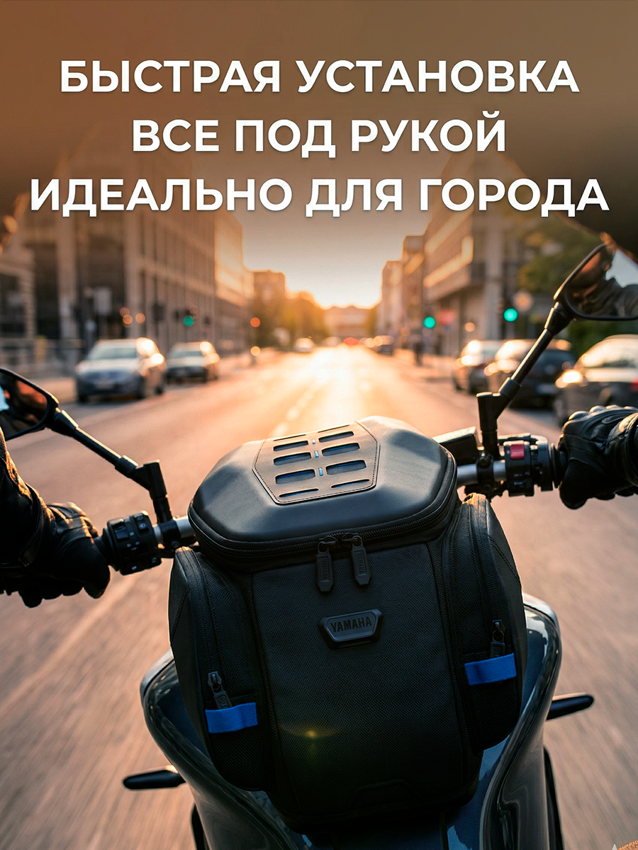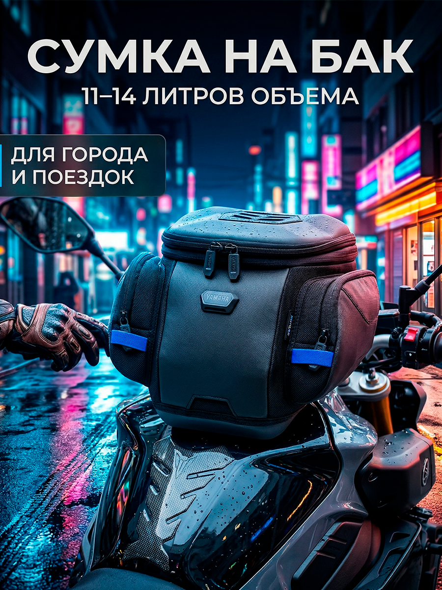 Сумка на бак среднего размера идеально подходит для езды по городу или коротких поездок. Объем увеличивается с 11 до 14 литров на молнии. Логотип Yamaha включен Насадка MOLLE из прочного материала Hypalon. Сетчатые отделения внутри. Петля для ручки спереди. Магнитное крепление обеспечивает быстрое и простое крепление.Артикул: YMEFTBAGCT02; В000354569