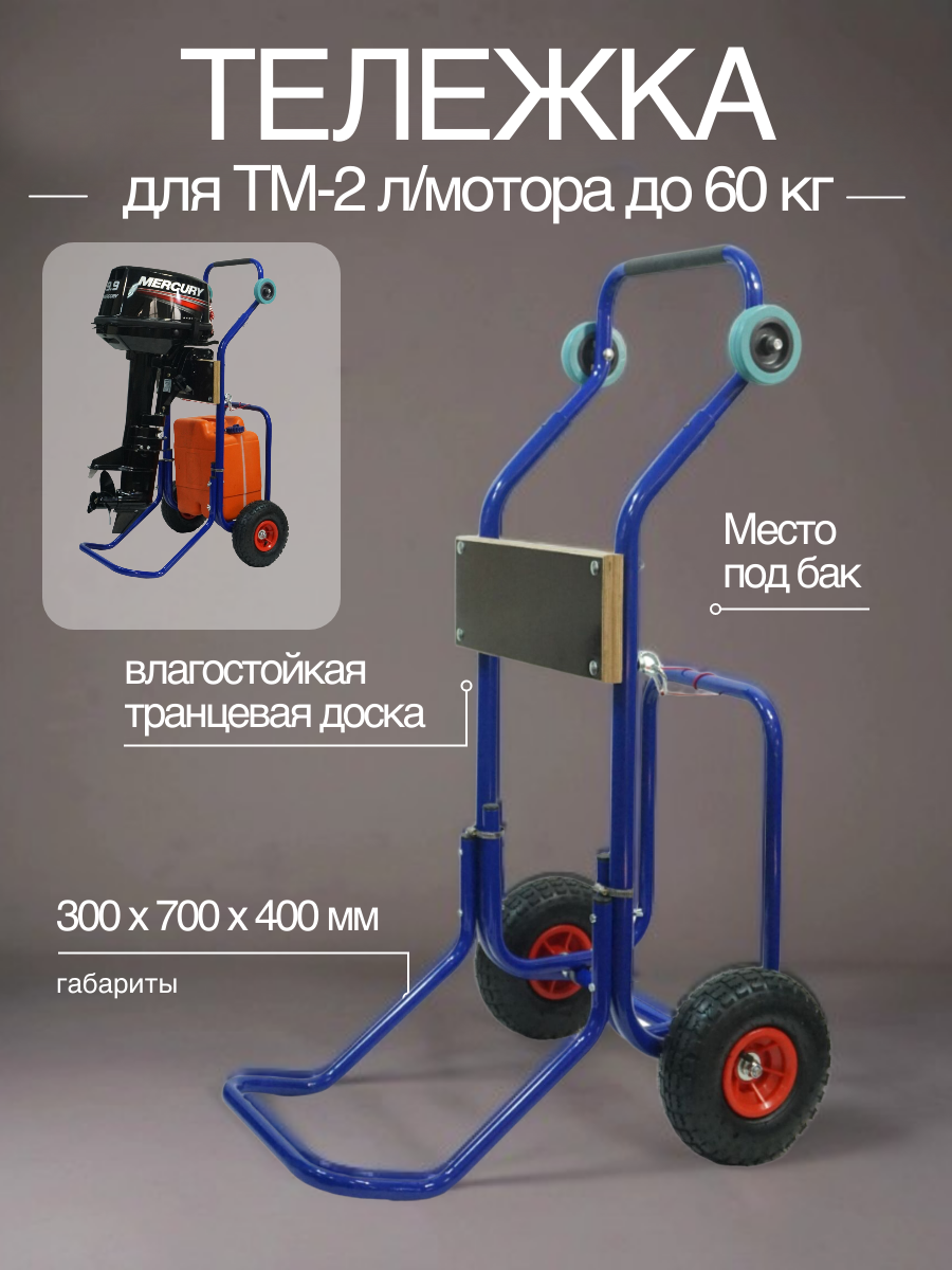 Транспортировочная тележка серии ТМ-2 предназначена для перевозки 4-х тактного или 2-х тактного подвесного лодочного мотора и надувной лодки в собранном состоянии по грунту и для транспортировки мотора в автомобиле, а также для осуществления планового ТО, ремонта и хранения мотора (в базовой комплектации).