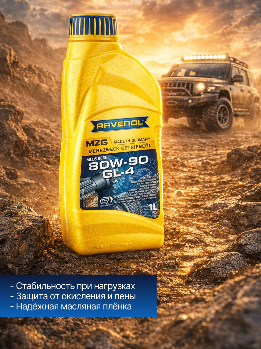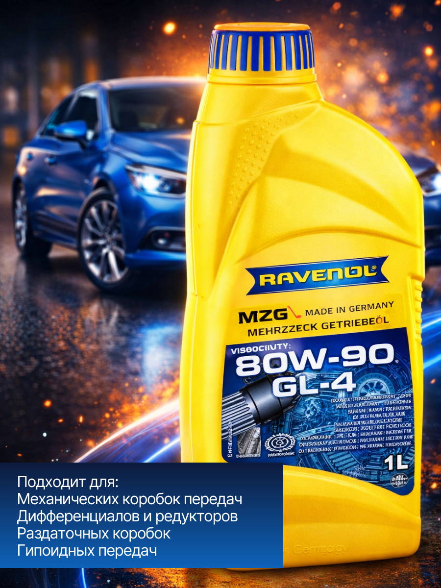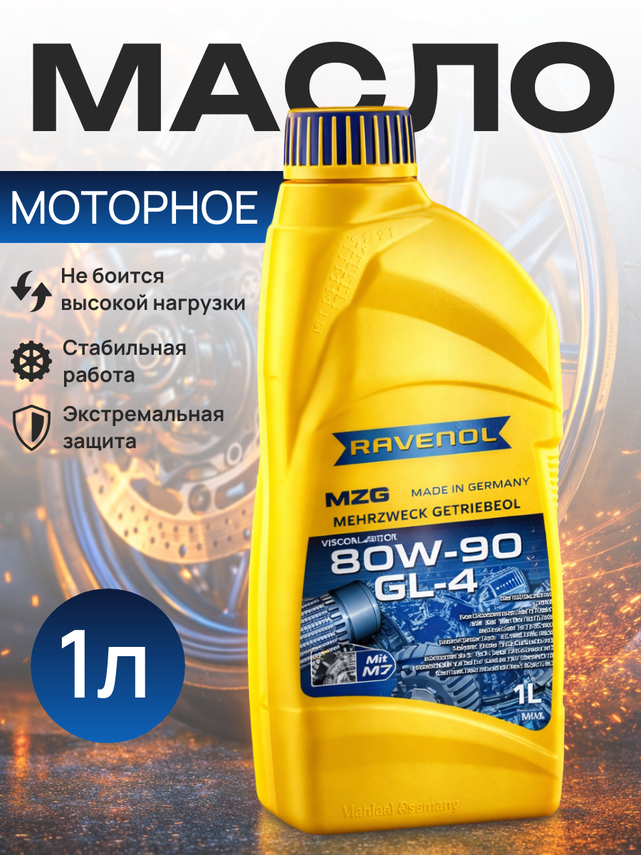 Трансмиссионное масло RAVENOL Getriebeol MZG SAE 80W-90 GL-4 ( 1л) new Минеральное трансмиссионное масло. Надёжно защищает коробку передач и узлы трансмиссии легковых и грузовых автомобилей, внедорожной и спец.техники при экстремально тяжёлых условиях эксплуатации. RAVENOL MZG 80W-90 GL-4 – минеральное трансмиссионное масло, изготовленное на основе высокоочищенного базового масла c добавлением комплекса специальных присадок. Обеспечивает высокую нагрузочную способность, защиту от износа и устойчивость к окислению. Гарантирует хорошие вязкостно-температурные характеристики, низкую температуру застывания и отсутствие пенообразования при всех различных условиях эксплуатации и режимах. Предназначено для современных коробок передач, дифференциалов, раздаточных коробок, гипоидных передач задних мостов и прочих элементов трансмиссии, для которых производитель рекомендует применение смазочных материалов с высоким содержанием противоизносных присадок. Применение Getriebeol MZG SAE 80W-90 GL-4обеспечивает: Хорошую адгезию и выдерживающую давление смазочную пленку Отличную устойчивость к окислению Прекрасные вязкостно-температурные свойства Отличную защиту от износа Защиту от пенообразования Нейтральное поведение по отношению к уплотнительным материалам
