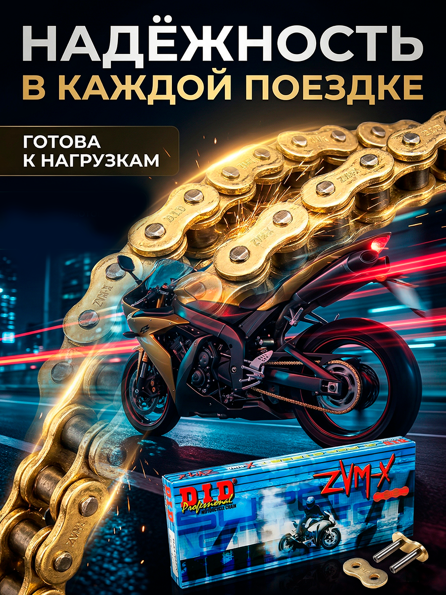 Габариты 10х4х35 Название модели 525ZVMX G&G (100 звеньев); Партномер: 525ZVMX G&G (100 звеньев) Количество, штук: 1; Изготовитель: DID Chain; Цепь для: мотоцикла Вид мототехники: Мотоцикл;Артикул: 525ZVMX G&G 100; В000353879