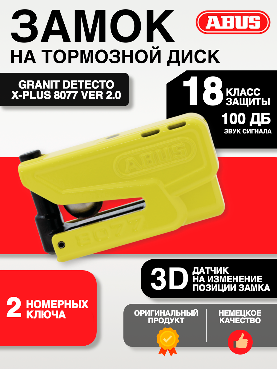 Замок ABUS Granit Detecto XPlus 8077 ver 2.0 желтый на торм диск